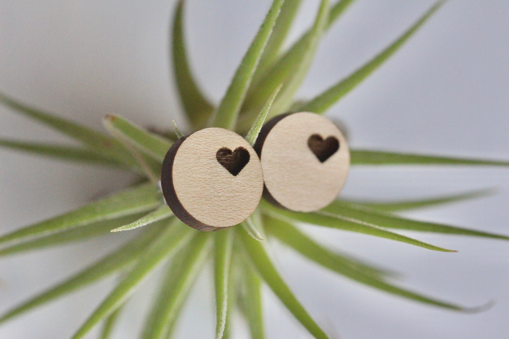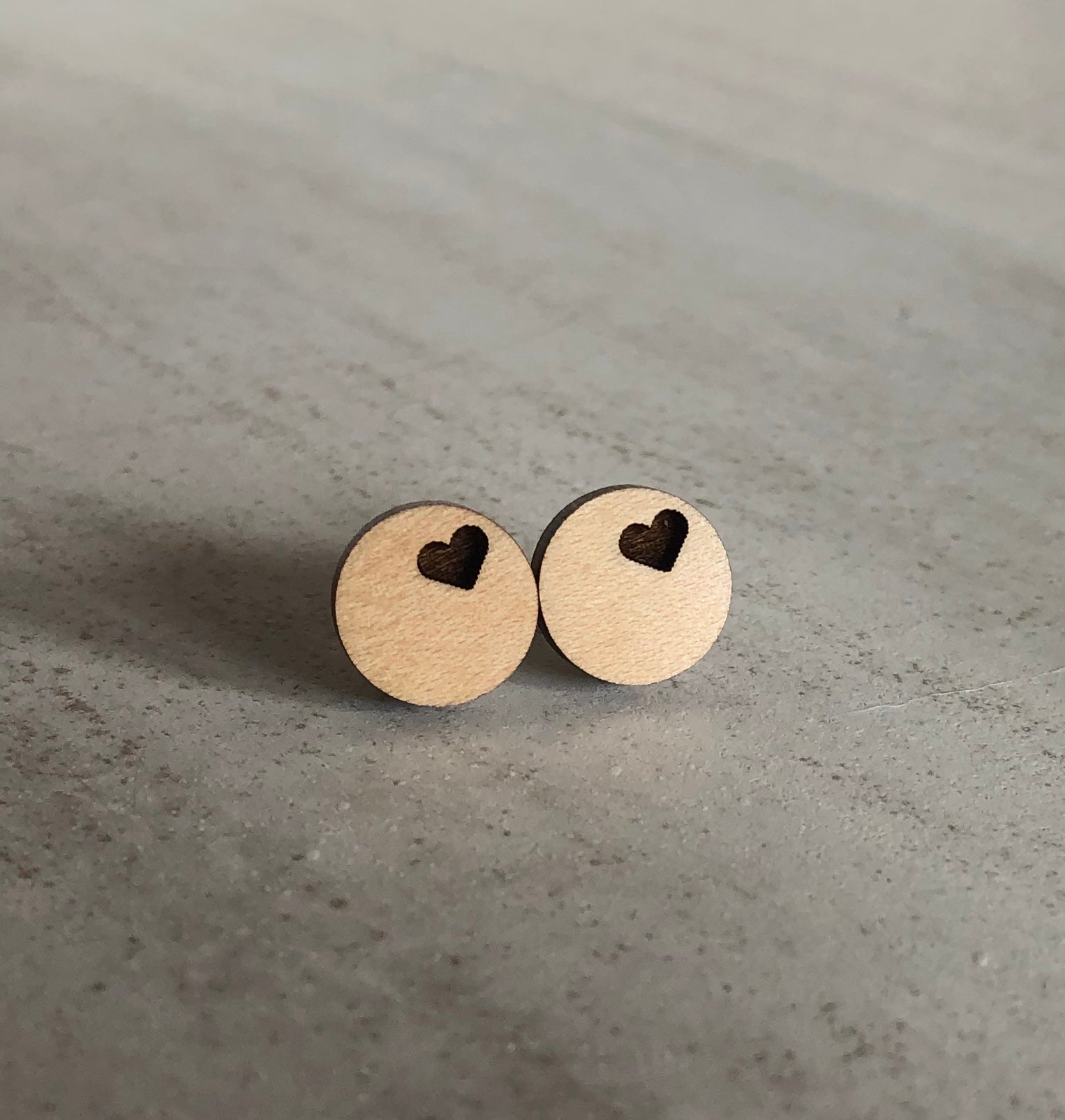 Small, simple, and stunning, these maple studs showcase a delicately engraved heart. Great for everyday wear or a cute gift.