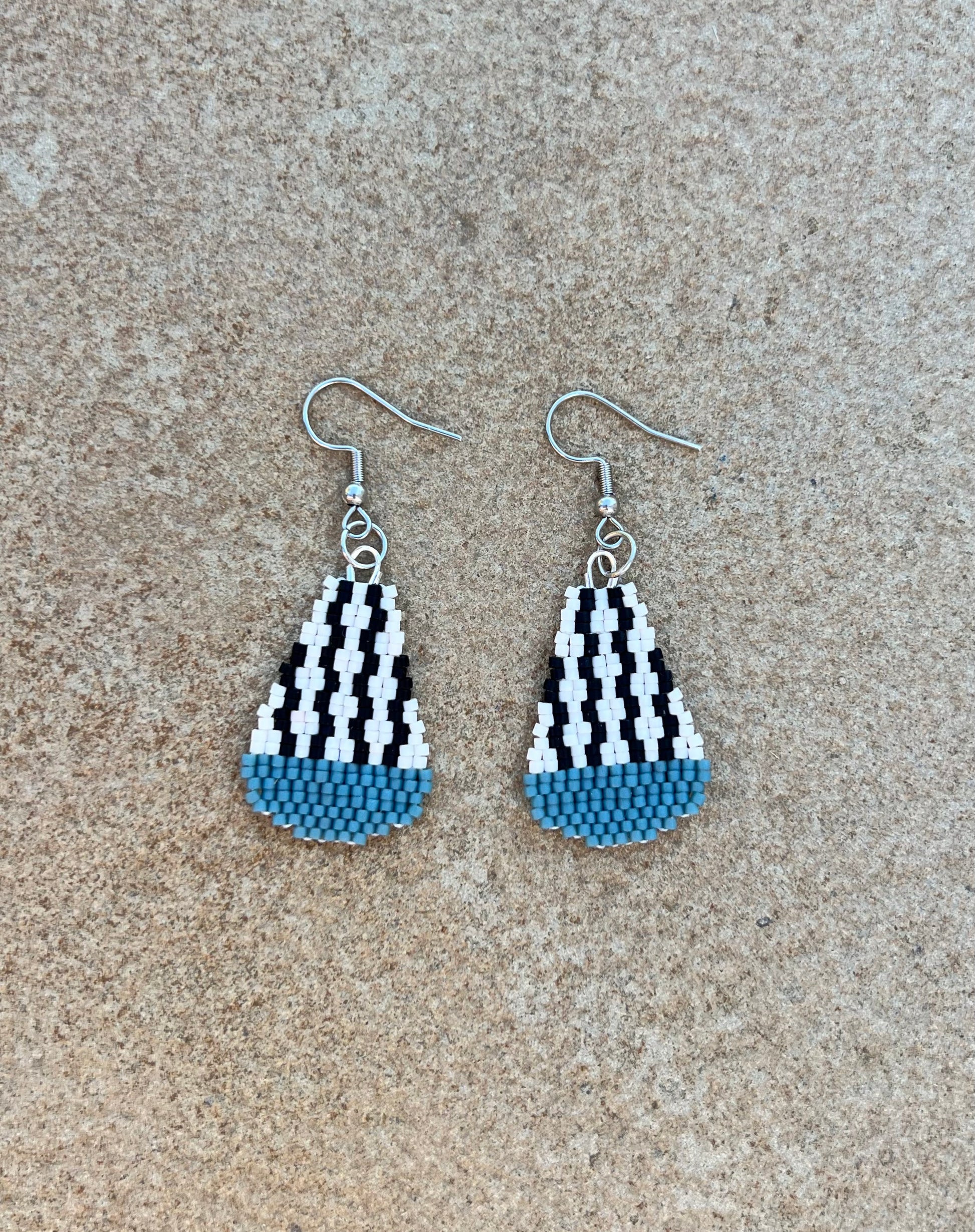 These earrings are crafted with 420 Japanese glass beads hand woven together with thread. They are finished with hypoallergenic Sterling Silver Ear Wires.
